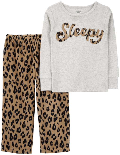 Girls 4 14 Carter s Leopard Fleece Top Bottoms Pajama Set