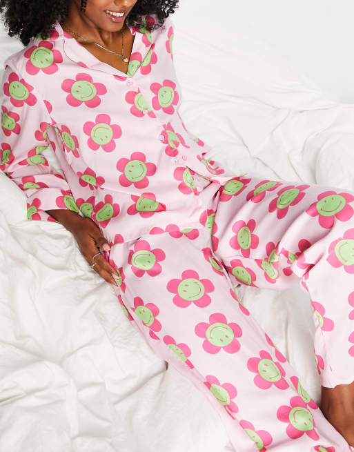 ASOS DESIGN smiley flower modal long sleeve shirt trouser pyjama