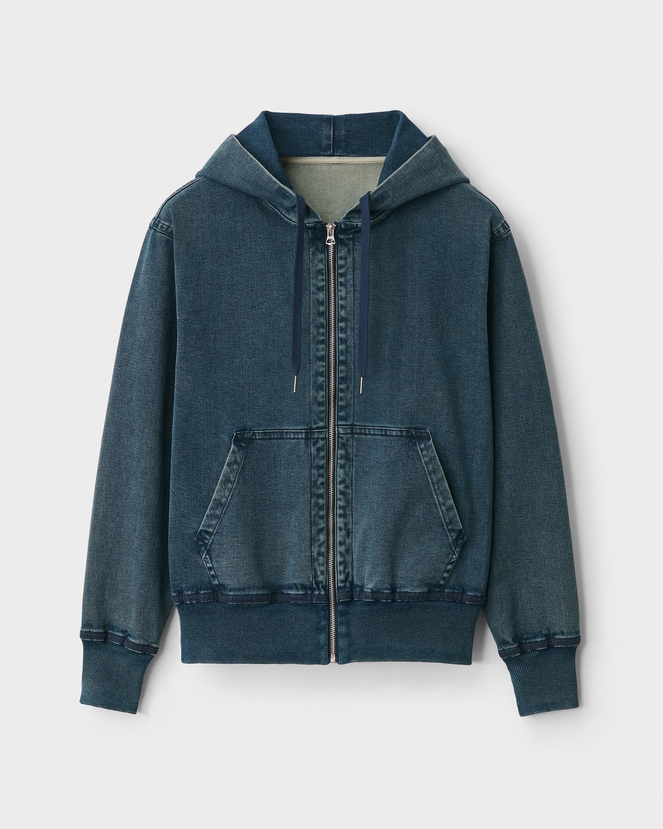 Damon Zip Loopback Denim Hoodie Elkhart rag bone
