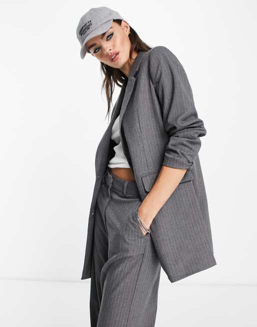 Selected Femme tailored pinstripe suit blazer co ord in grey