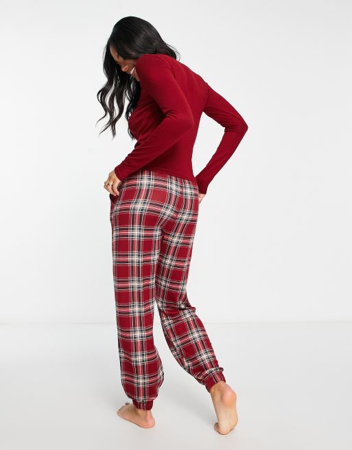 Gilly Hicks cosy long sleeve and trackies sleep set in red check