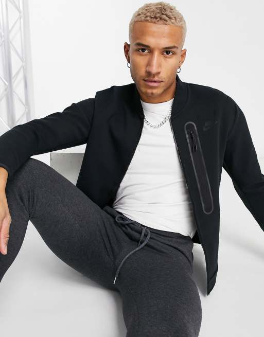 Nike Tech Fleece full zip sweat bomber jacket in black ASOS