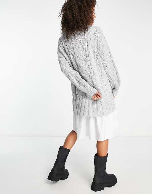 River Island cable knit hybrid jumper mini dress in grey ASOS