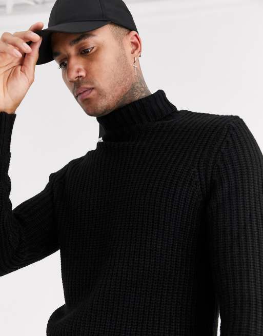 Roll Neck Chunky Knit Jumper Black Mani re De Voir