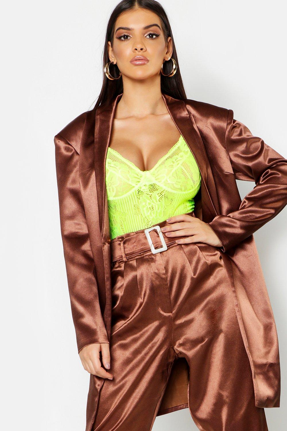 Femme Blazer gris pierre en maille tiss e tr s oversize paulettes Jandb Joggings Jandb Lesssensdusud