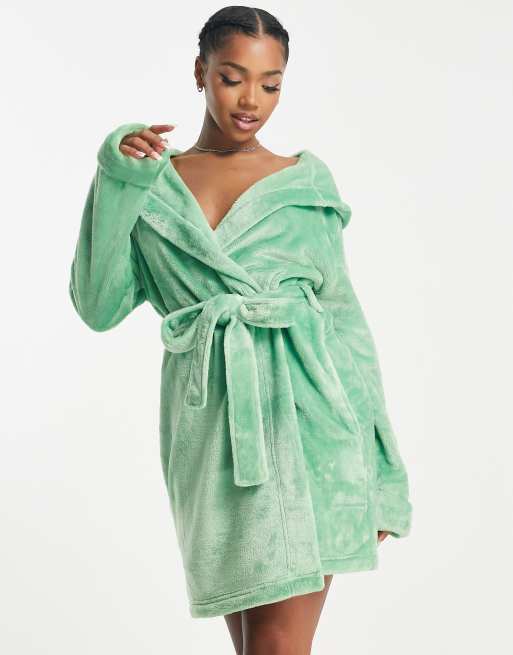 ASOS DESIGN super soft fleece mini robe in green ASOS