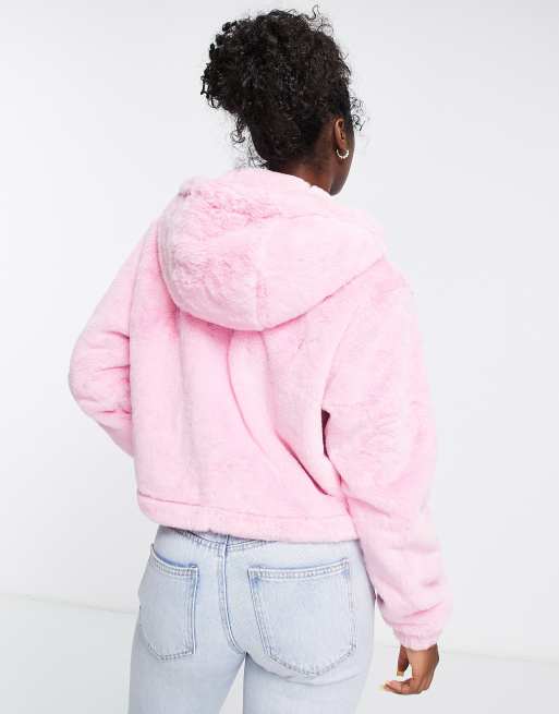 ellesse faux fur hoodie in pink ASOS