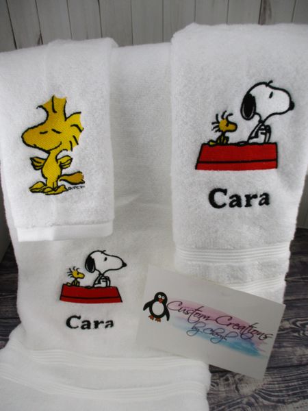 Snoopy Woodstock Dog house Personalized 3 piece Bath Towel Set