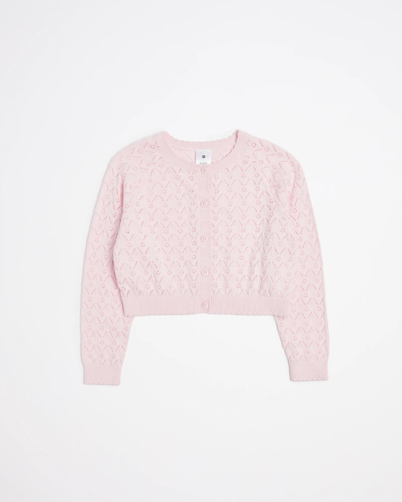 Scalloped Cropped Pointelle Knit Cardigan Pink Target Australia