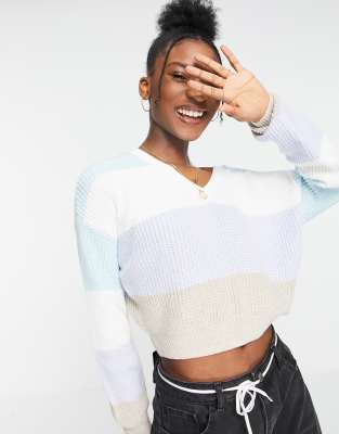 Windsor color block outlet waffle knit pullover, Hollister balloon sleeve sweater in multi stripe ASOS outlet