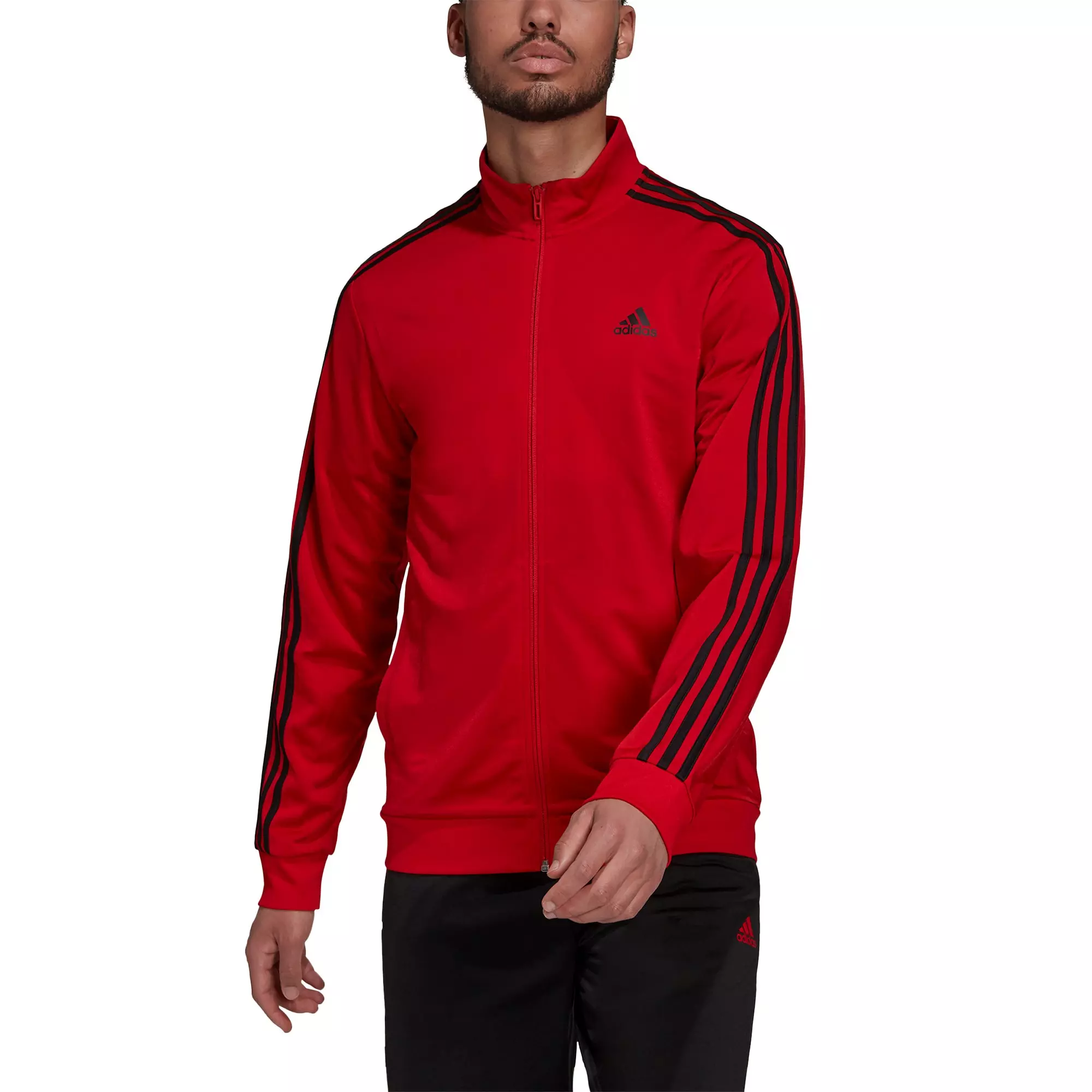 adidas Men s Scarlet Black Primegreen Essentials Warm Up 3 Stripes
