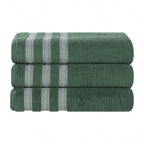 White Classic Luxury Forest Green Bath Towel Set Combed Cotton