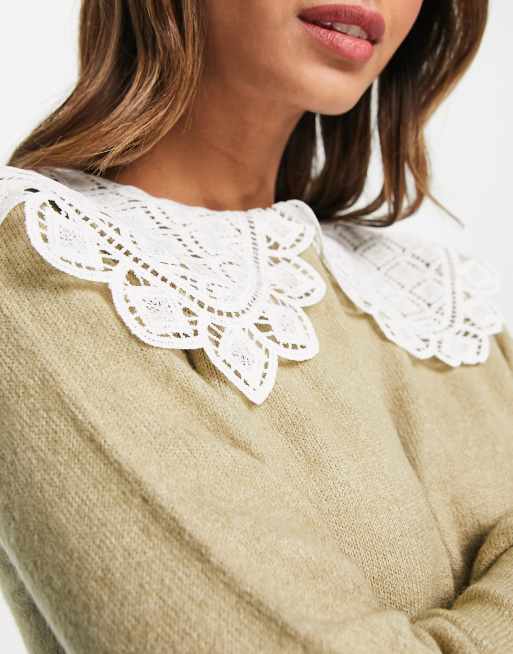 Wednesday s Girl Pull court avec col oversize en dentelle