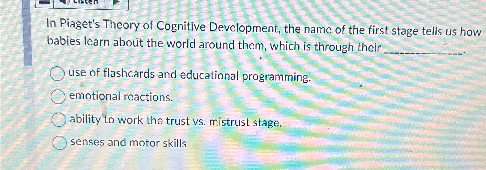 First stage of outlet piaget's theory, Solved In Piaget s Theory of Cognitive Development the name outlet