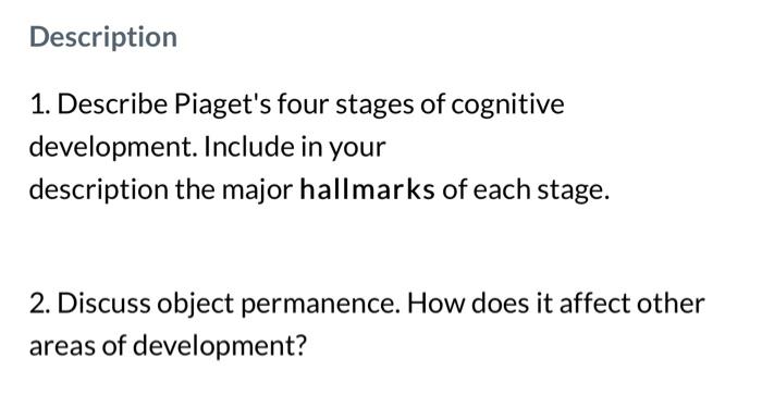 Solved 1. Describe Piaget s four stages of cognitive Chegg