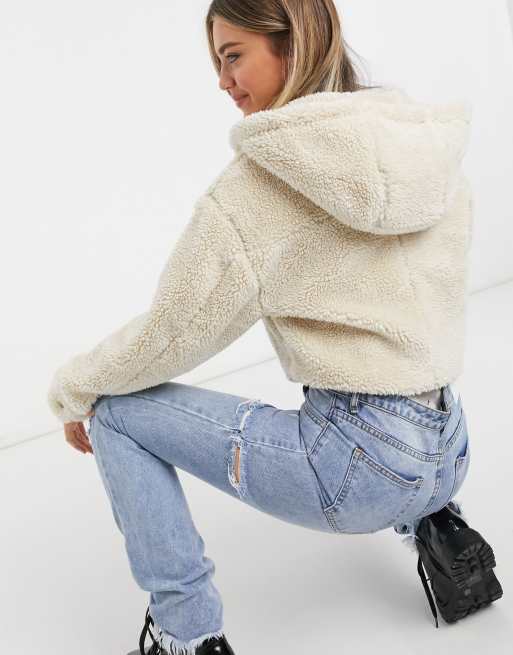 Blouson court moutonné outlet pull and bear, Pull Bear Veste courte capuche en imitation peau de mouton Beige outlet