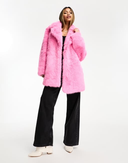 Jayley Manteau court en fausse fourrure Rose chewing gum ASOS