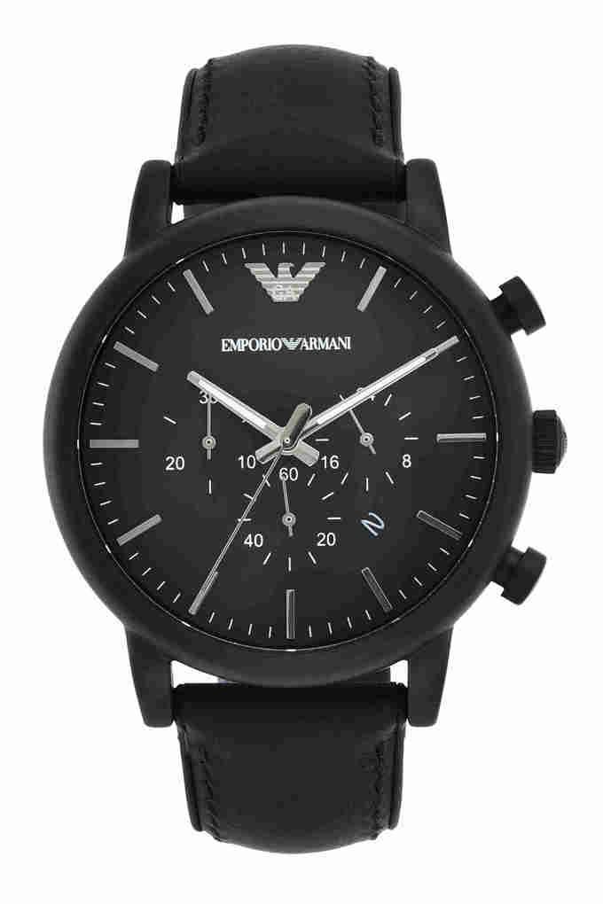 Buy EMPORIO ARMANI Mens 46 mm Luigi Black Dial Leather Chronograph