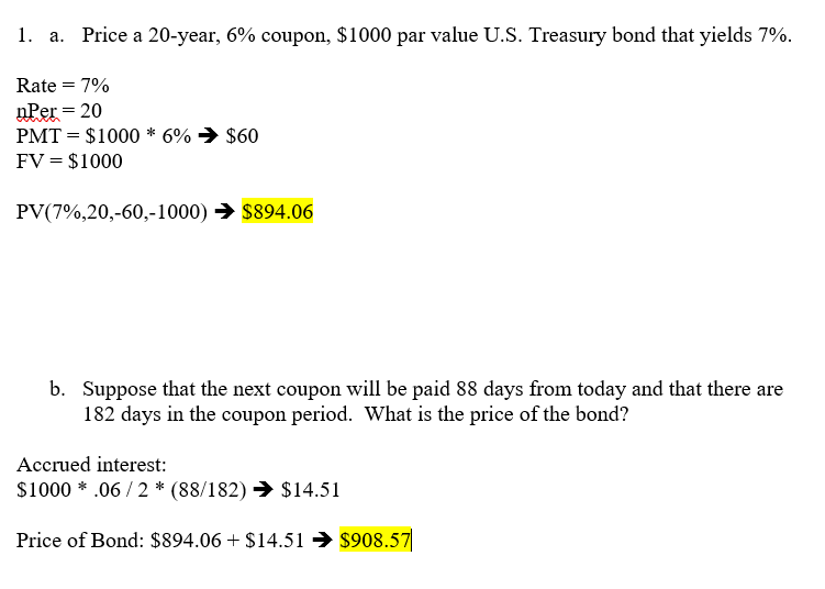 1. a. Price a 20 year 6 coupon 1000 par value Chegg