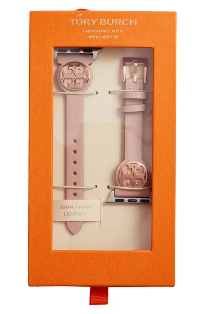 Tory Burch Miller Leather 11mm Apple Watch Watchband In Blush