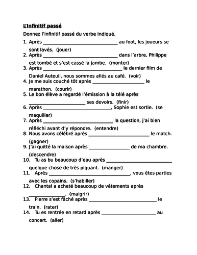 Infinitif pass Past Infinitive in French Worksheet 2 Teaching