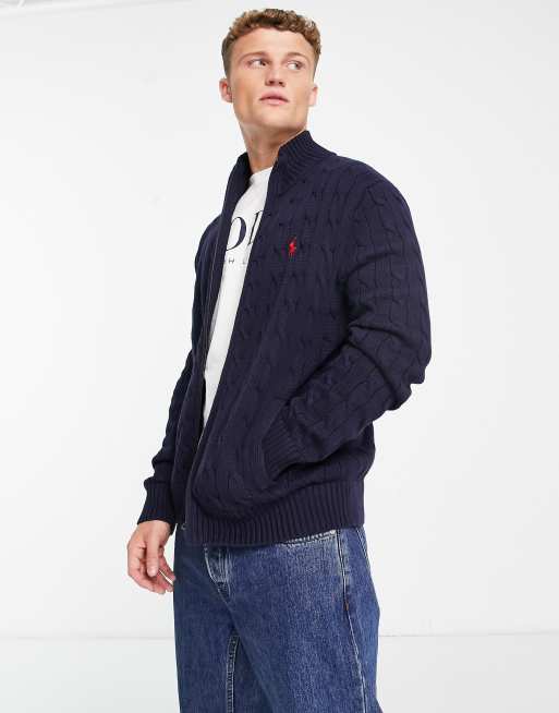 Polo Ralph Lauren Gilet en maille de coton torsad e avec fermeture clair et logo embl matique Bleu marine