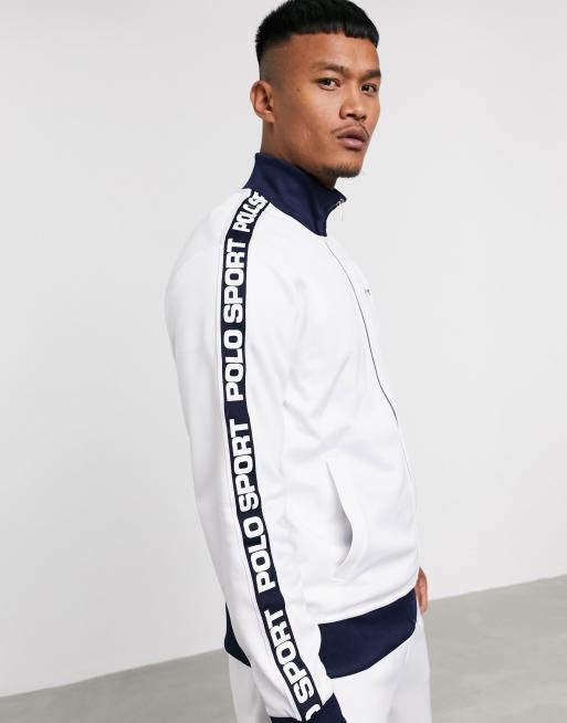 Polo Ralph Lauren Sport Capsule Veste de surv tement en maille avec manches bandes griff es Blanc