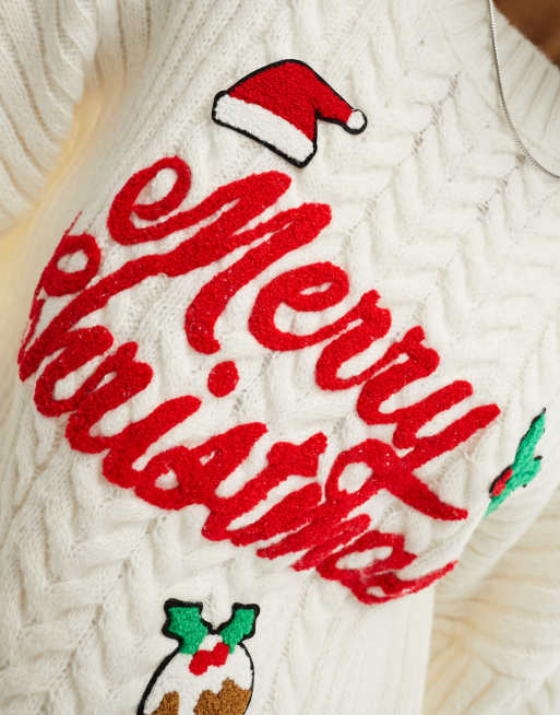 Pull noel outlet femme asos, ASOS DESIGN Pull de No l en maille c tel e avec appliqu s outlet