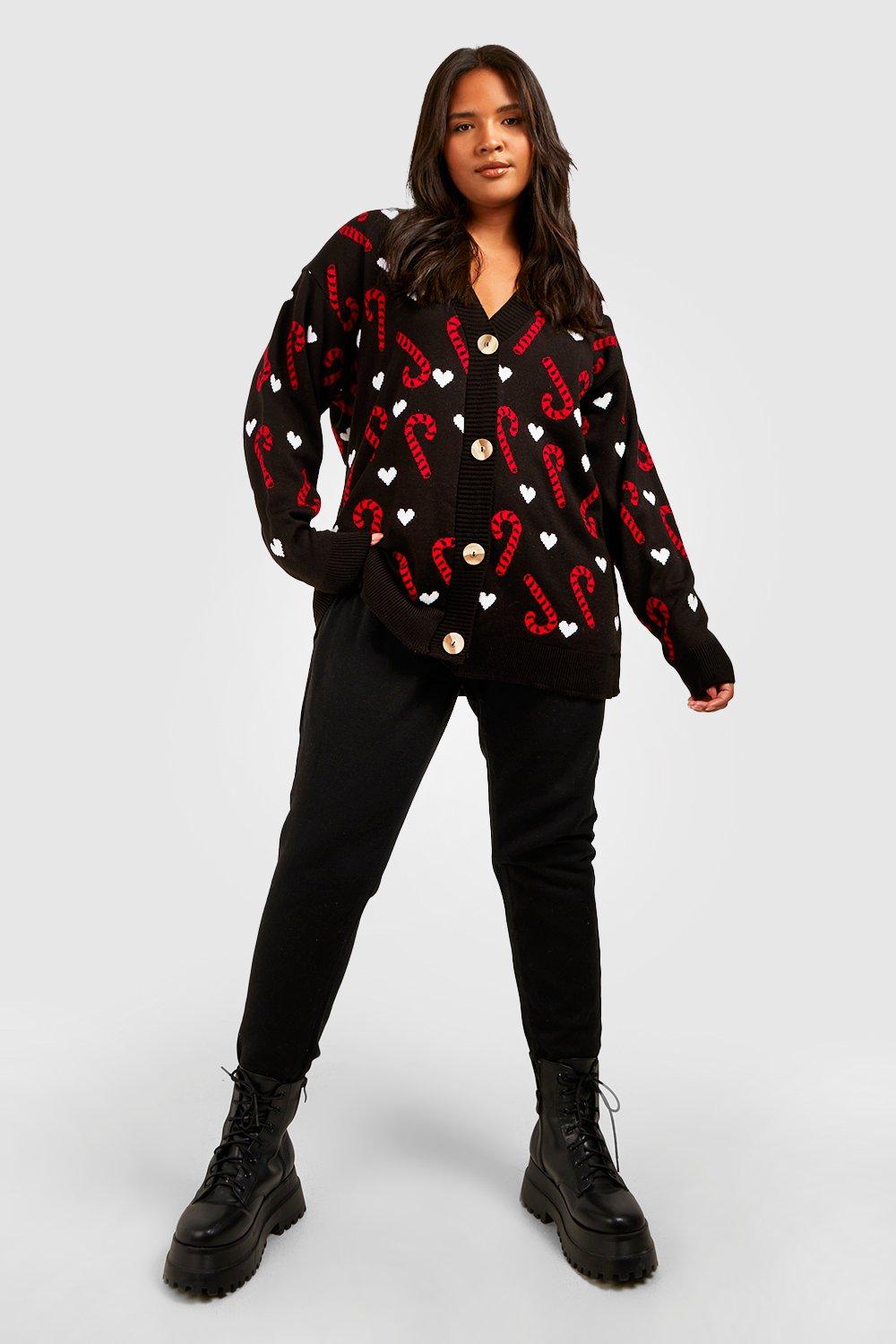 Cardigan outlet noel femme, Grande taille Cardigan de No l imprim sucre d orge boohoo outlet