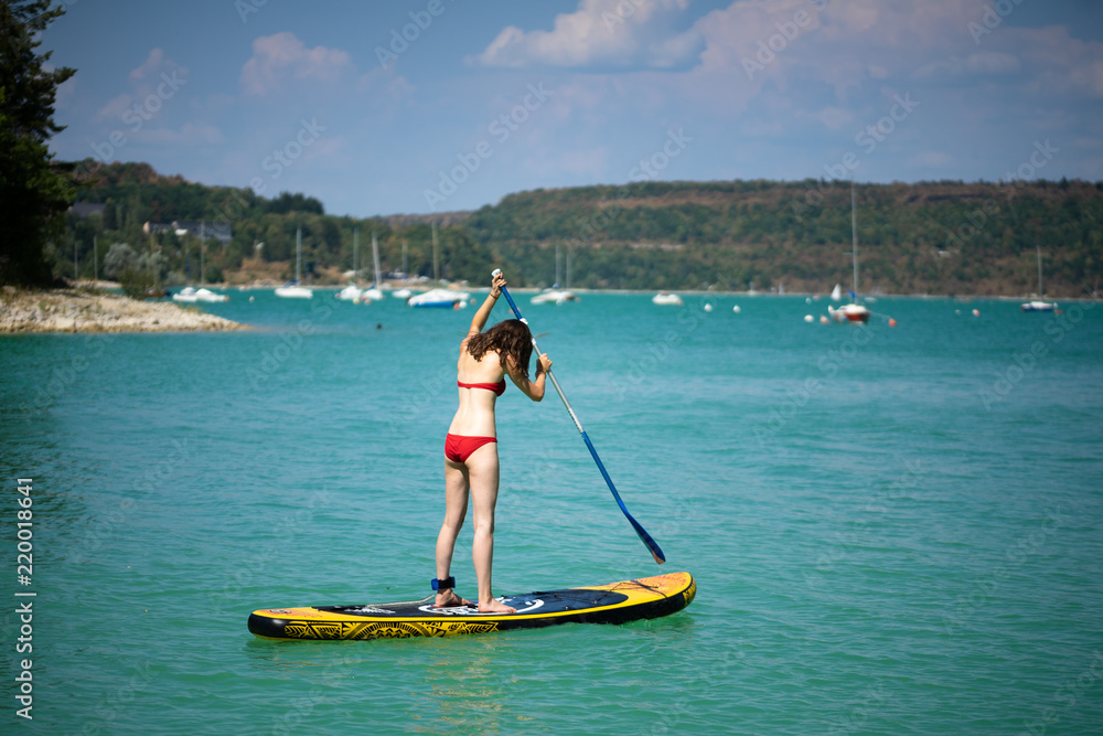 Maillot de outlet bain paddle, Jolie Jeune Femme En Maillot De Bain Posant Avec Stand Up Paddle outlet
