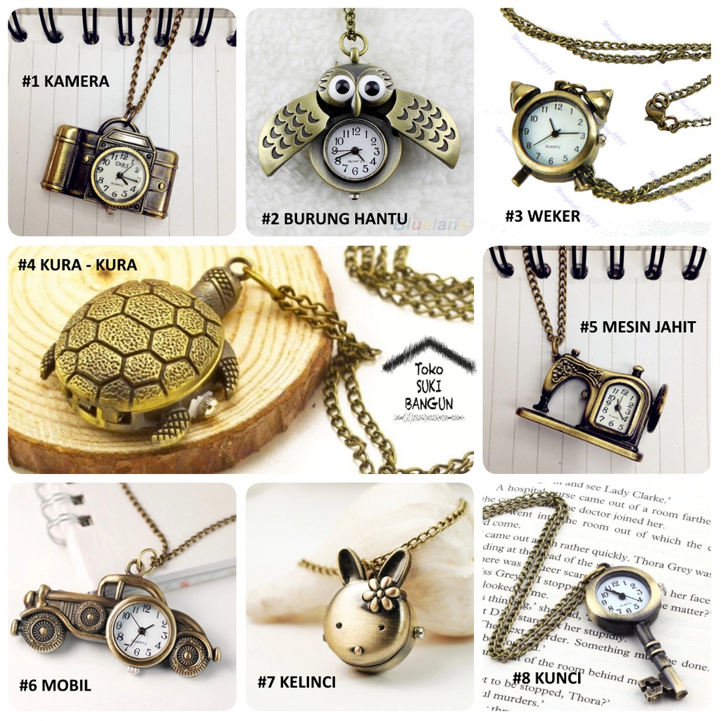 VARIOUS Pocket Watch Bronze Vintage Pendant Chain Kalung Jam Saku