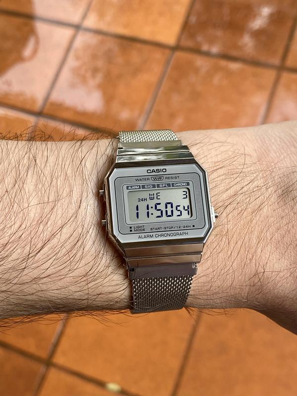 Casio Casio Silver Vintage Digital Watch With Stainless Mesh Band
