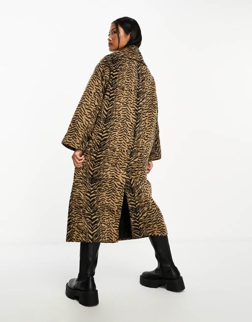 Manteau outlet asos petite, ASOS DESIGN Petite Manteau habill imprim animal Marron outlet