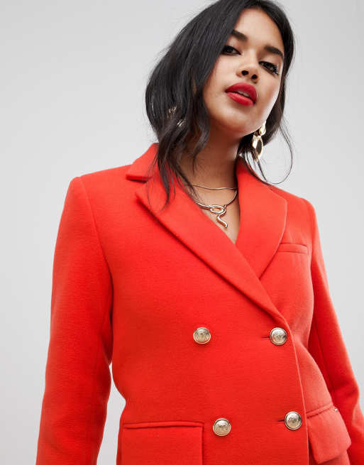 Short straight buttoned coat red ladies Morgan