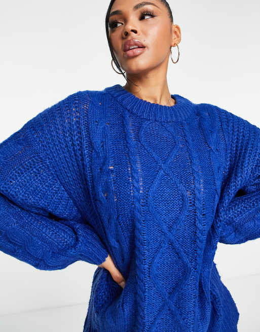 Pull oversize outlet bleu electrique, Brave Soul Tokyo Pull oversize en maille torsad e Bleu lectrique outlet
