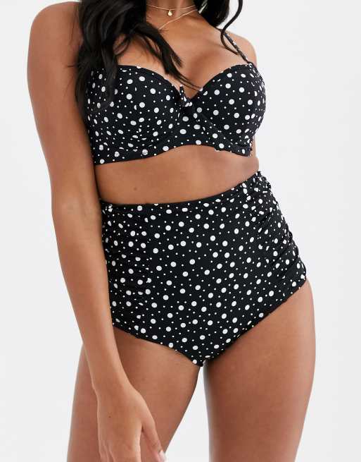 Pour Moi Bas de bikini taille haute gainant pois Noir