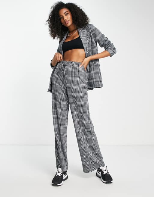 ASOS DESIGN L stsiddende habit blazer med Prince of Wales tern i jersey