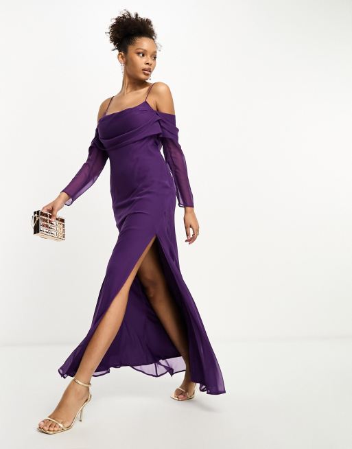 ASOS DESIGN Robe longue fines bretelles col b nitier et paules nues Violet