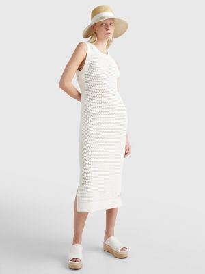 Robe tiss e longueur midi BLANC Tommy Hilfiger