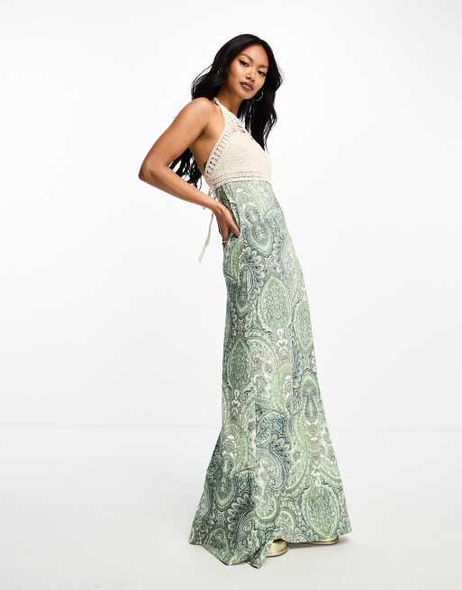 ASOS DESIGN Robe longue avec jupe imprim cachemire et corsage crochet