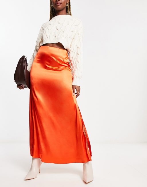 Jupe outlet satin orange, Jupe orange de satin avec la rose Etsy France outlet