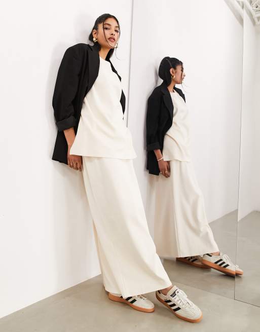 ASOS EDITION Jupe longue droite d ensemble en jersey pais textur de qualit sup rieure Cr me