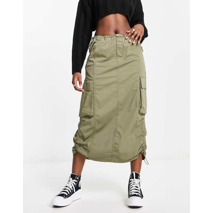 Bershka Jupe cargo mi longue Kaki