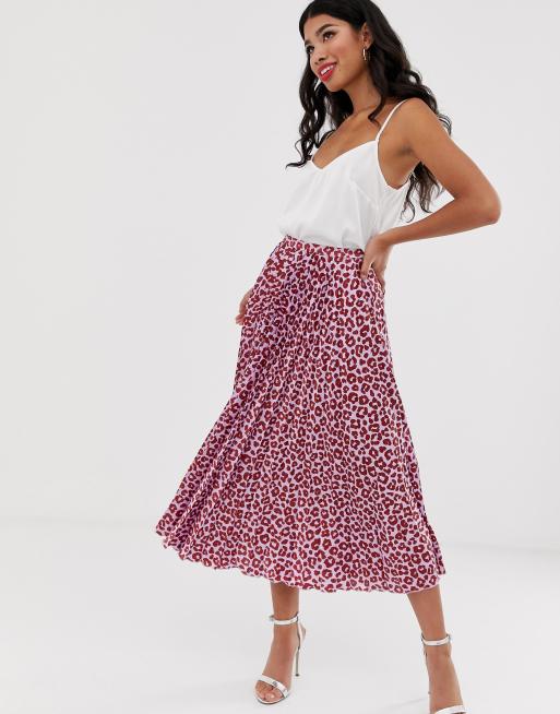 ASOS DESIGN Jupe mi longue pliss e en satin imprim l opard