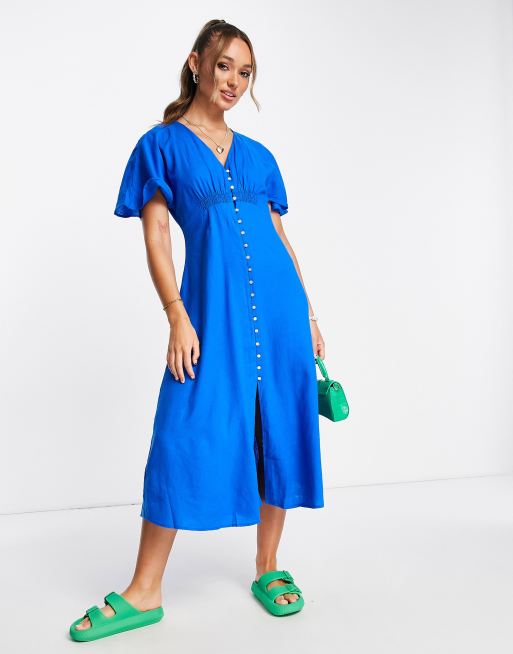 Mango Robe mi longue boutonn e col en V Bleu vif ASOS