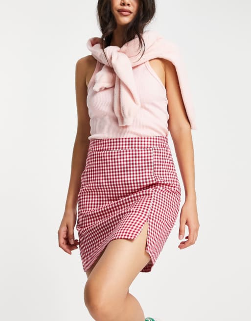New Look Mini jupe fendue coupe trap ze Rouge vichy ASOS