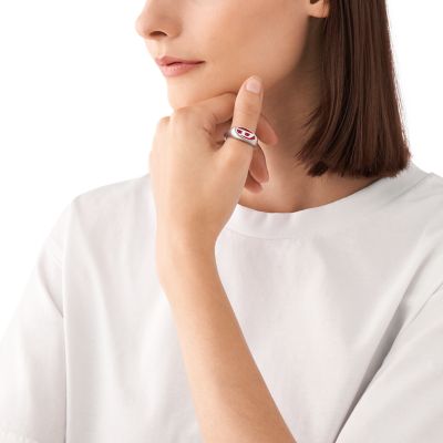 Diesel Bague chevali re avec Logo en Acier Inoxydable pour Homme
