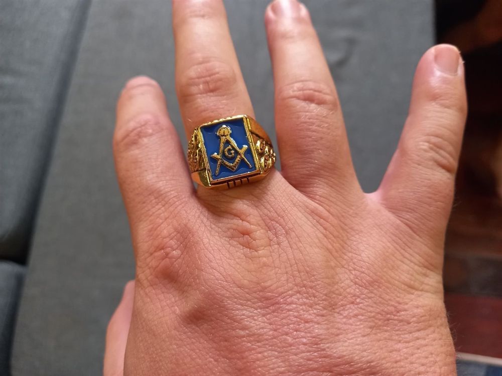 Bague outlet franc maçonnerie, Bague homme chevali re des Francs Ma ons en acier dor l or fin outlet