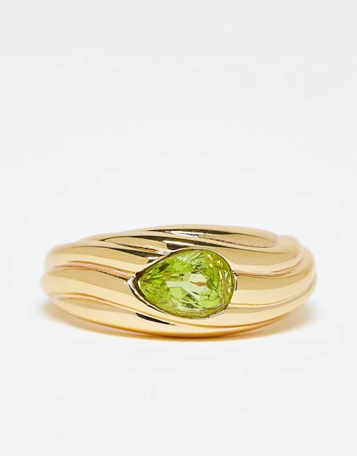 Bague plaqué or outlet pierre semi précieuse, Astrid Miyu Bague d me gravures effet vagues en plaqu or outlet