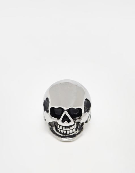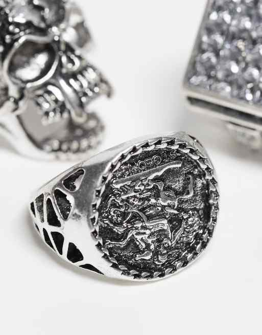 ASOS DESIGN 3 pack ring set with animal skull and crystals in burnished silver tone